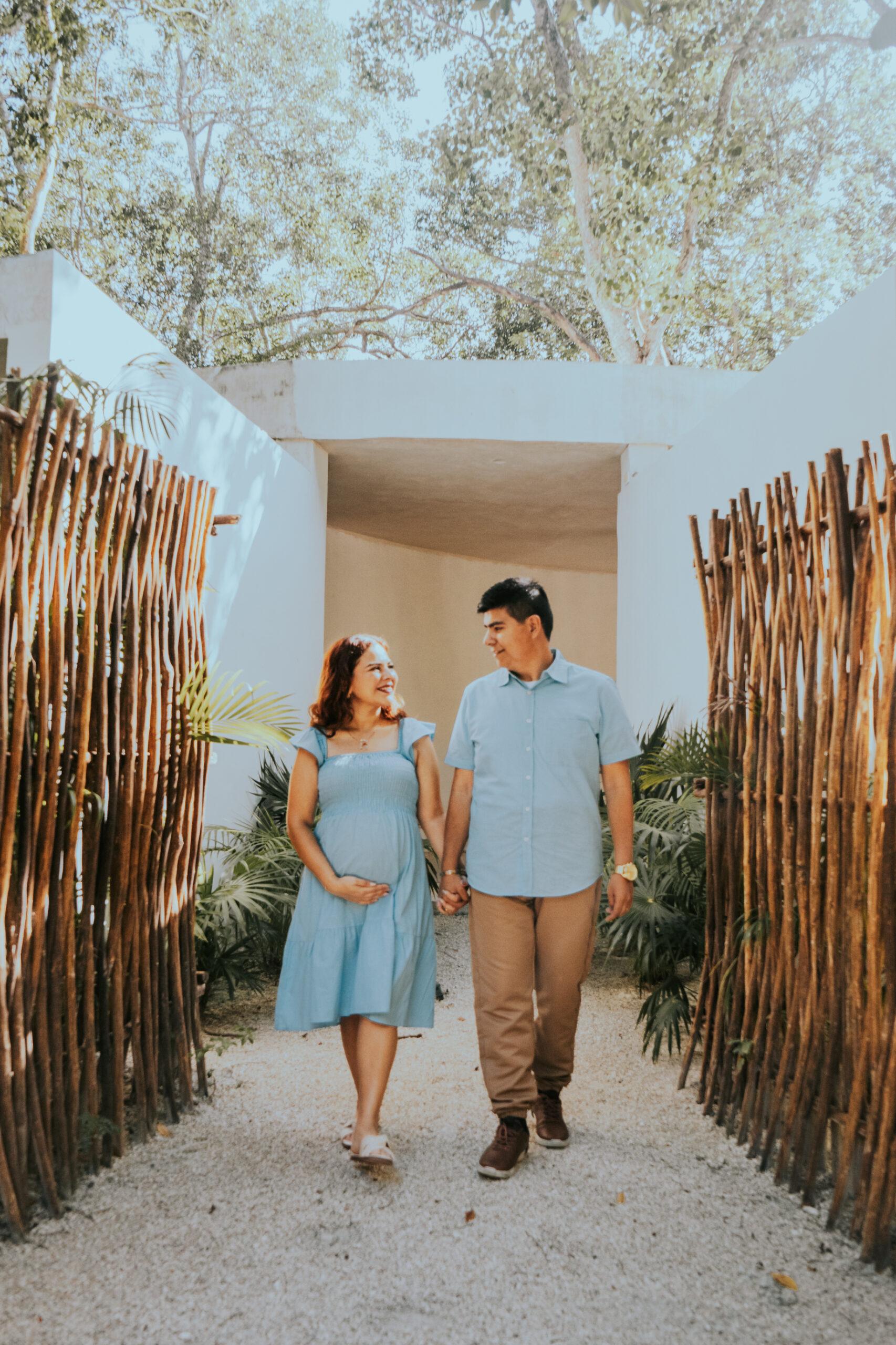 Reggina and Daniel chose the earthy magic of Tulum to celebrate the upcoming arrival of their baby boy. Dressed in soft blues and surrounded by nature, their session was a tender and romantic tribute to this new beginning.