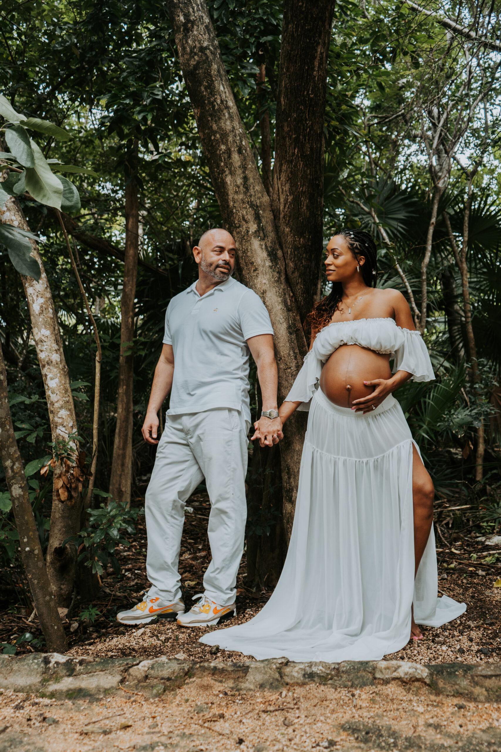 Surrounded by the lush jungle of Tulum, Dali and Michael embraced a moment of calm before welcoming their third baby. With earthy tones, deep greens, and the wild beauty of nature, their session felt raw, intimate, and full of love.